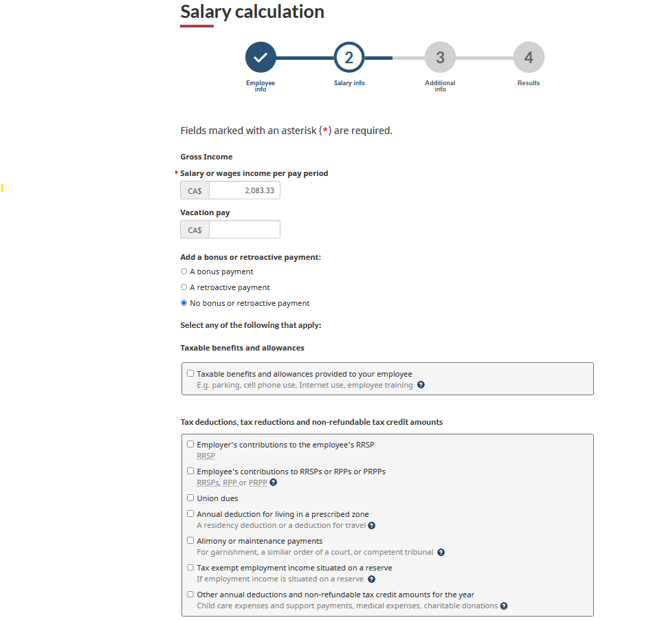 - Use the CRA calculator for per-pay calculations that reflect current rates.