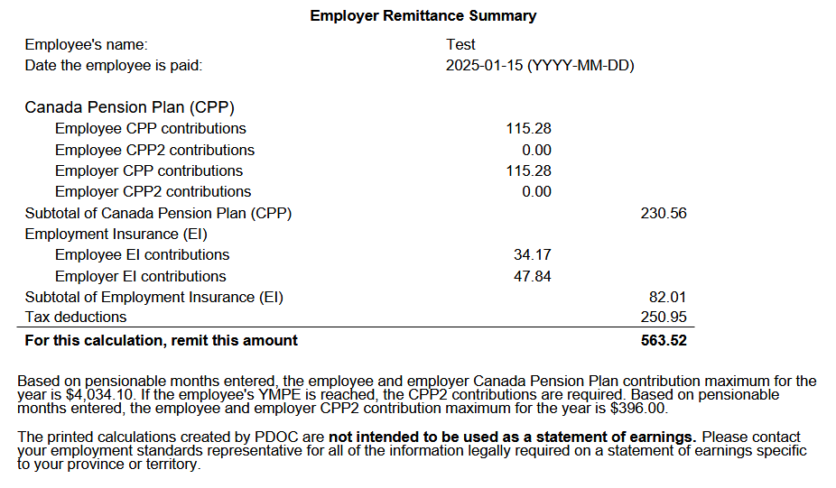 - Employer contributions summary: your CPP match + EI employer portion added to the remittance.